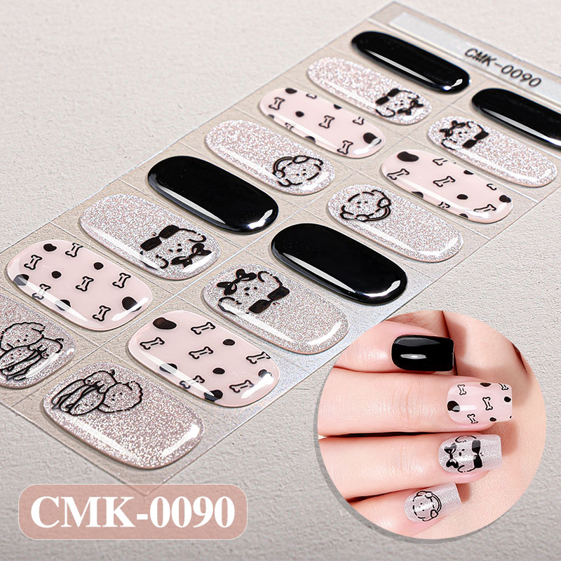 Gel Strips mit süßem Hunde-Motiv, Knochen und Punkten in Schwarz, Rosa und Silber.