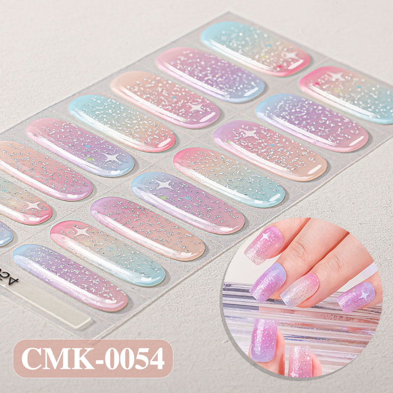 Premium Gel Strips mit Pastell-Farbverlauf und Glitzersternen in Rosa, Gelb und Mintgrün.