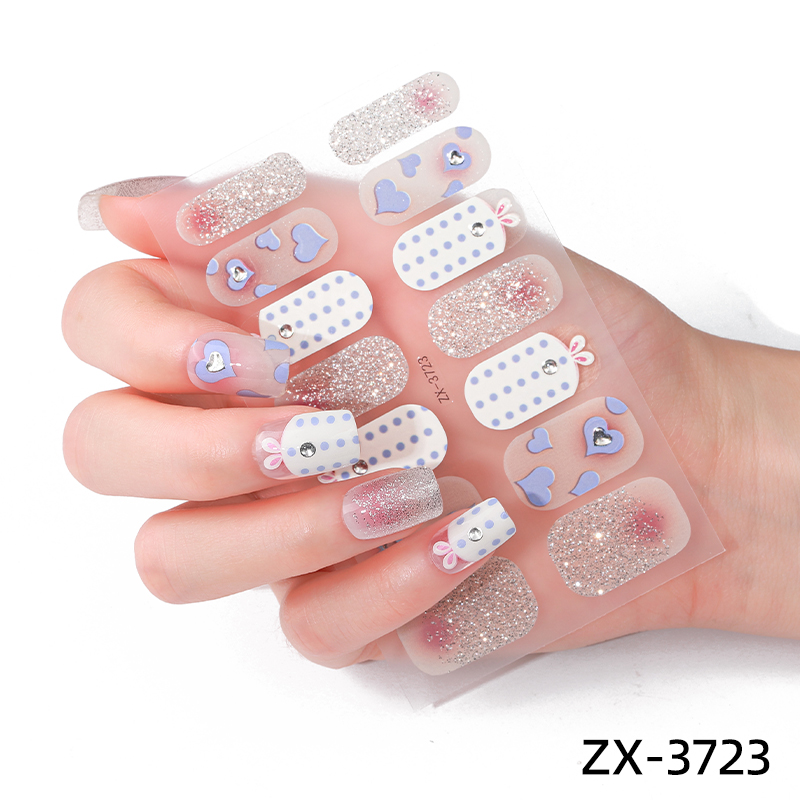 Gel Strips mit süßem Karo-Muster und rosa Herzen in Pastelltönen auf weißem Grund.